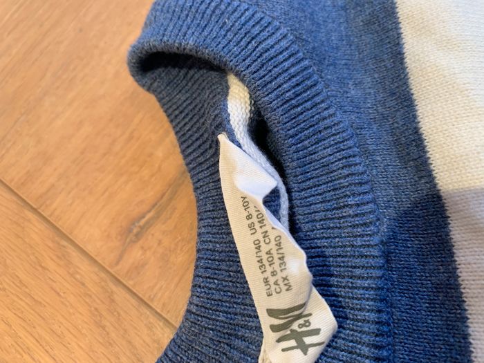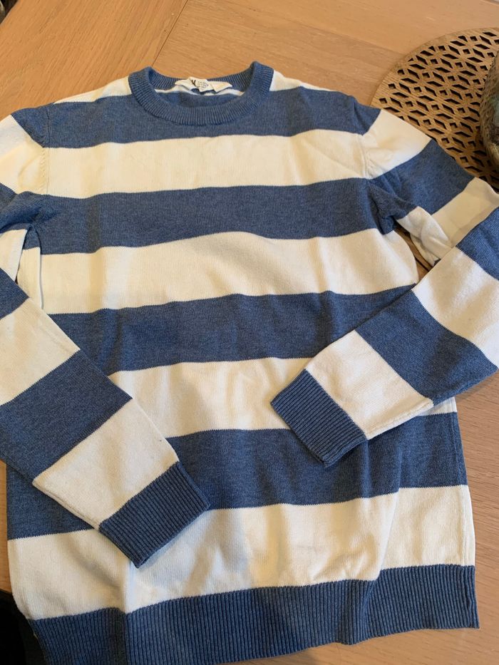 Rayé bleu et blanc 134/140 cm 100 % coton Comme neuf 💫💫💫💫