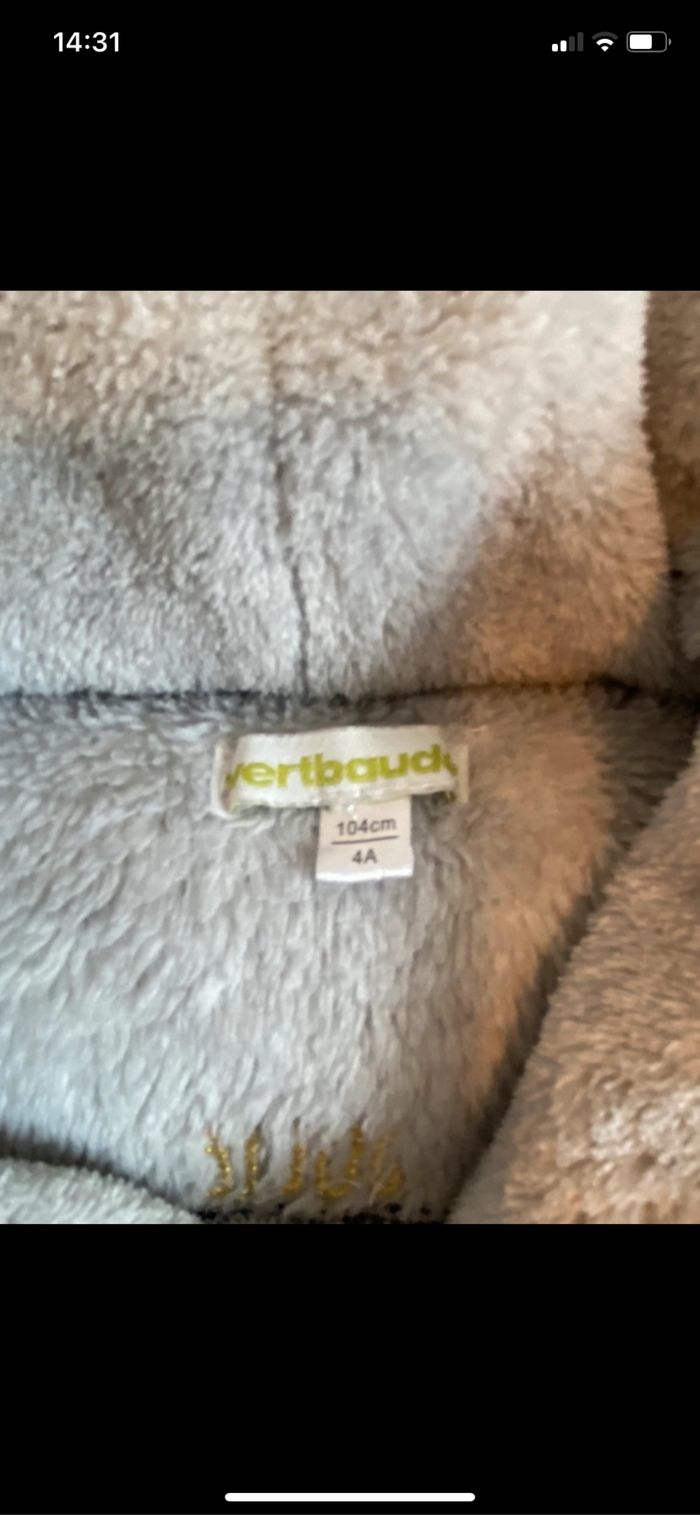 Robe de chambre douce Grise Verbaudet Fermeture bouton pression et ceinture