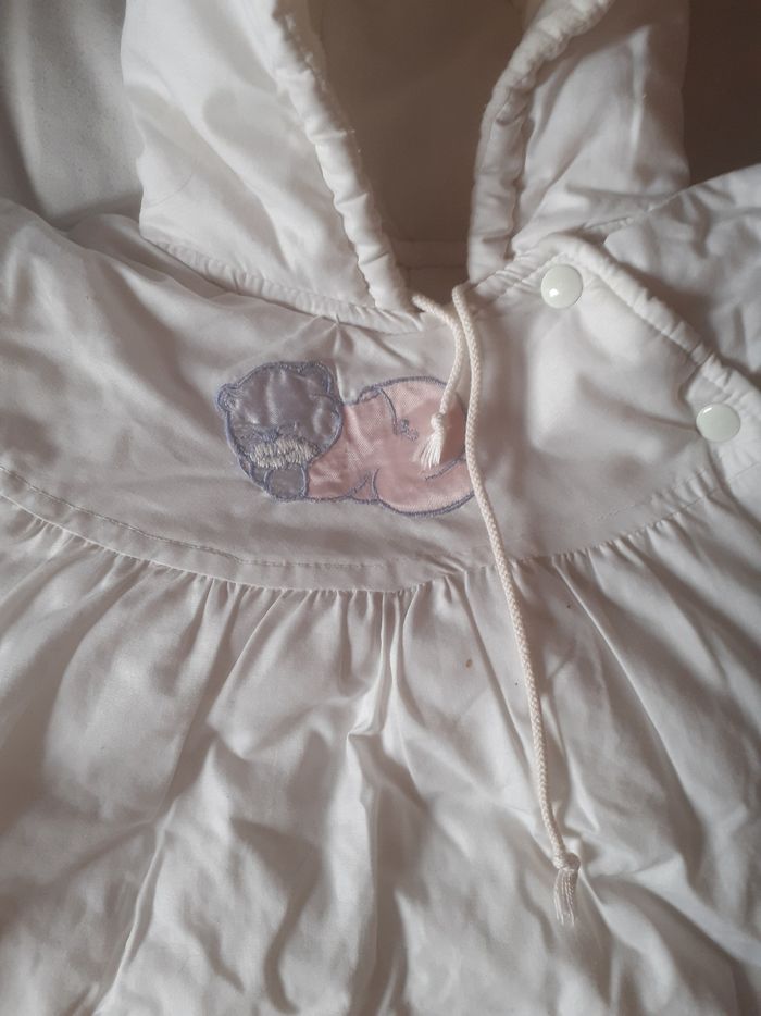 Nid d'ange blanc motif ourson dormant 3 à 6 mois (2 petites taches sous la couture sous le motif ourson)