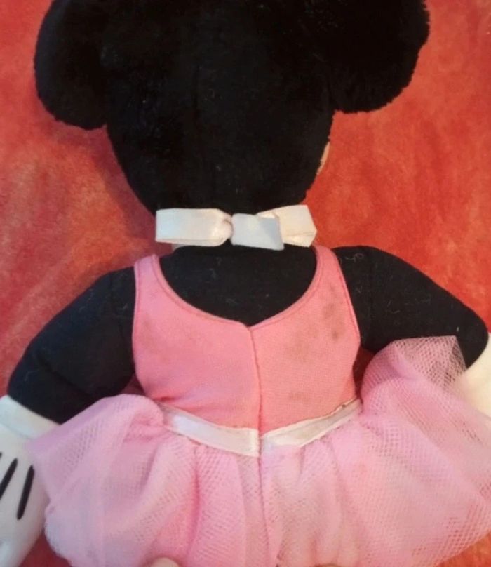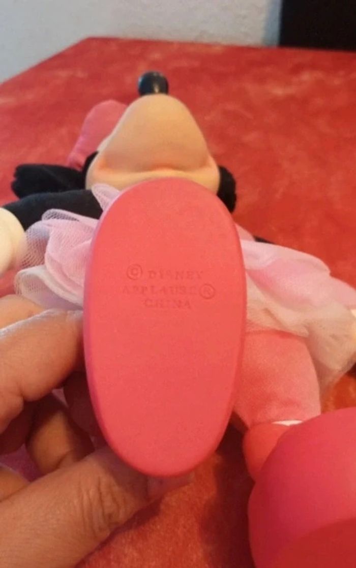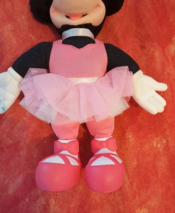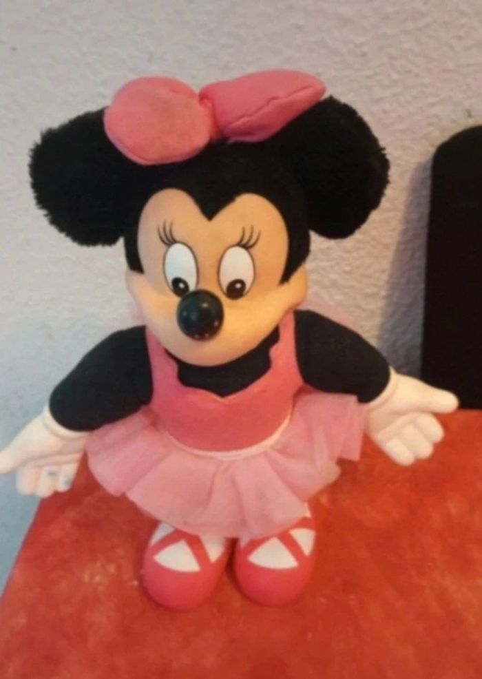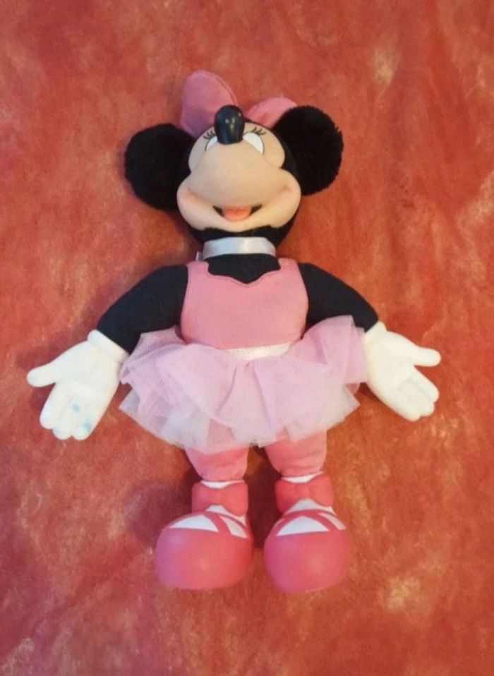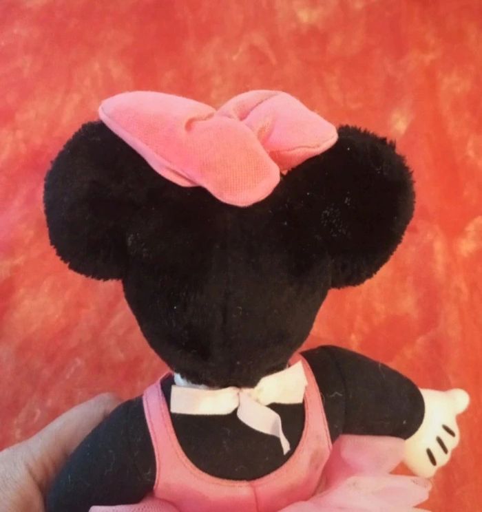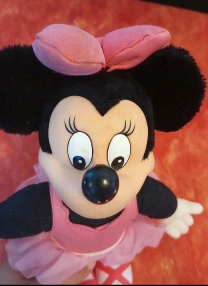 Peluche vintage de Minnie en ballerine danseuse rose, corps souple, la tête, les mains et les chaussures sont en plastique, tiens debout ,marque Applause Disney En bon état, trace d'encre sur la main et tâche sur le vêtement et le nœud papillon, vendu comme sur les différentes photos. Dans mon dressing, il y a d'autres peluches, des Petshop, des Lego Duplo, des Playmobil, des Barbie et beaucoup de jeux et jouets vintage