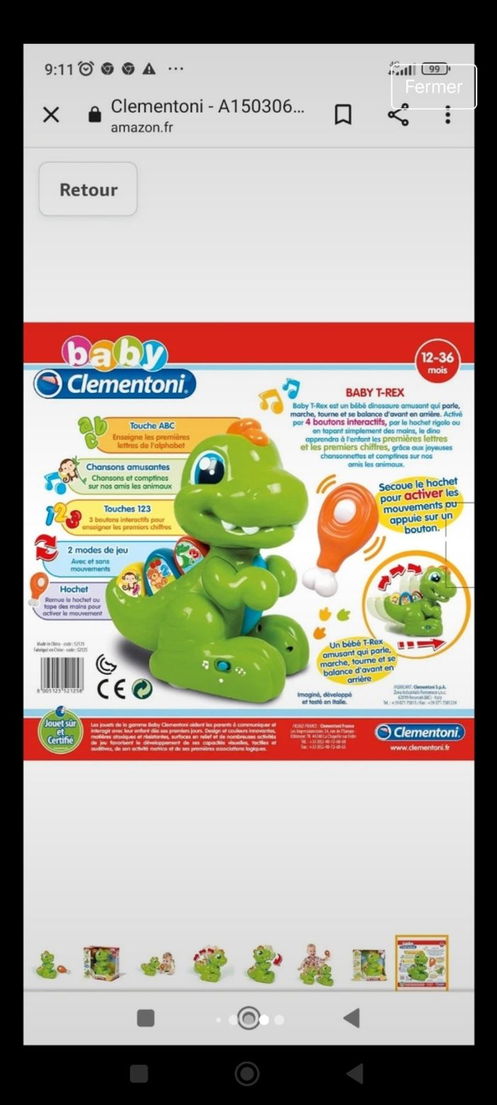 Dinausore qui avance sur des roulettes . (Vendu sans sa boîte d'origine) . Musique, chants , ..