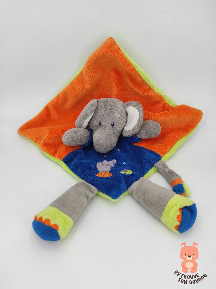 🐘 Doudou plat éléphant gris orange bleu et vert Nicotoy 📏 Dimension : 18 x 18 cm environ ✨ Occasion, excellent état, manque étiquette tissu 🧼 Lavé avec lessive hypoallergénique 👀 Vous achetez le doudou que vous voyez sur les photos.