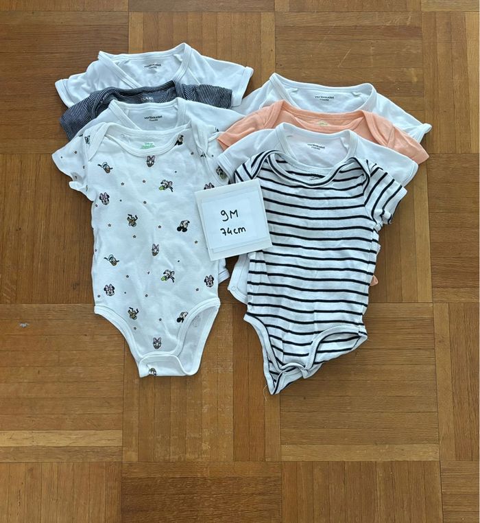 Lot de 8 bodies manches courtes Taille : 9M Vertbaudet, Kiabi, Disney