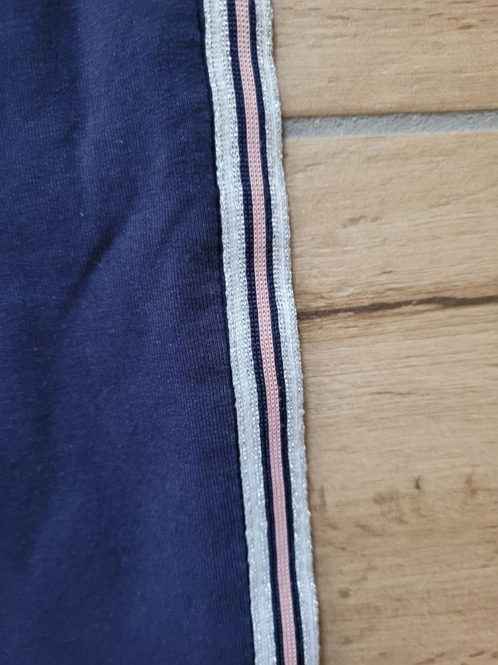 Jegging en coton bleu marine, liseret coloré sur les côtés, taille élastique.