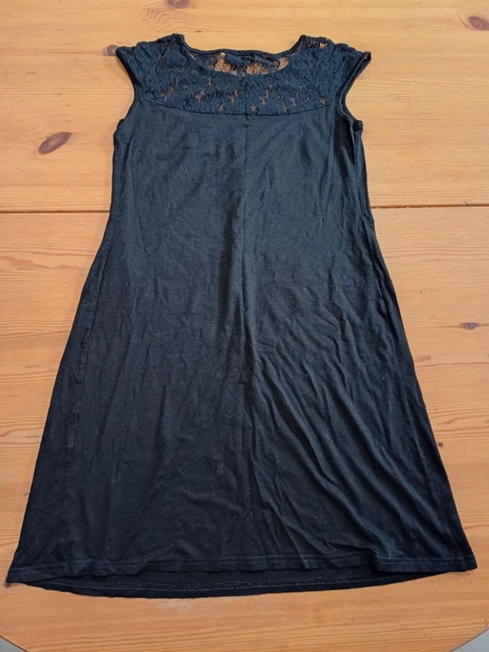 Robe courte avec de la dentelle à l'encolure.