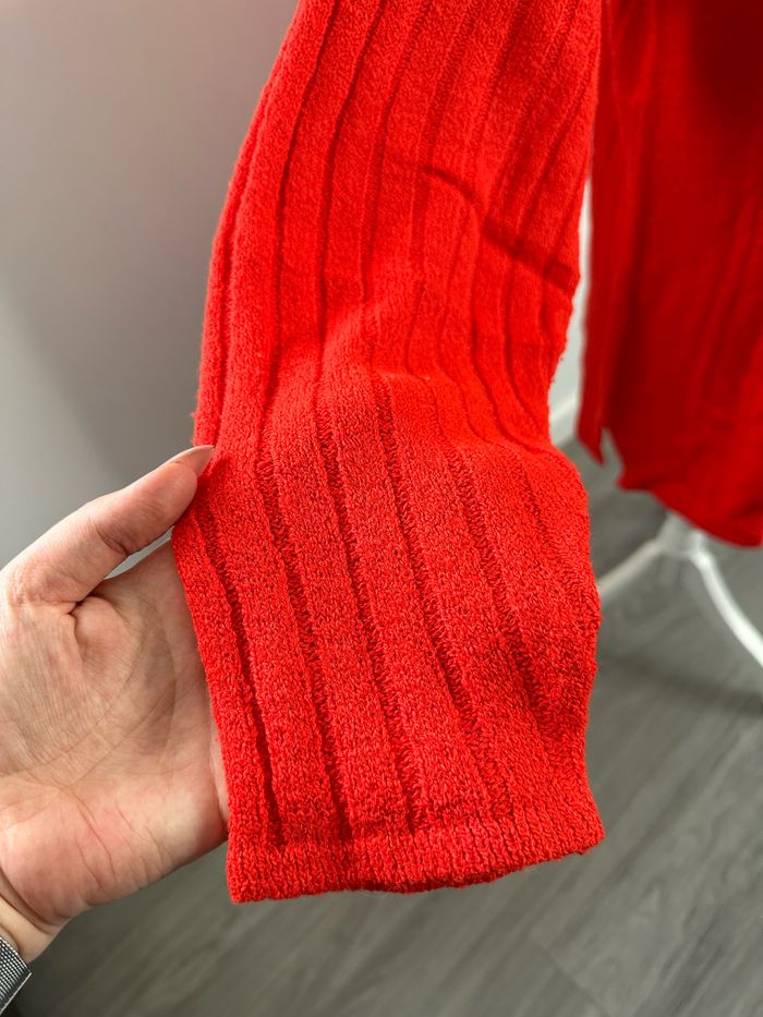 Pull oversize en maille torsades orange vif Vintage TU - photo numéro 8