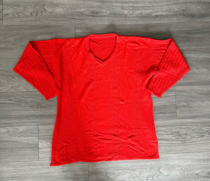 Pull oversize en maille torsades orange vif Vintage TU - photo numéro 7
