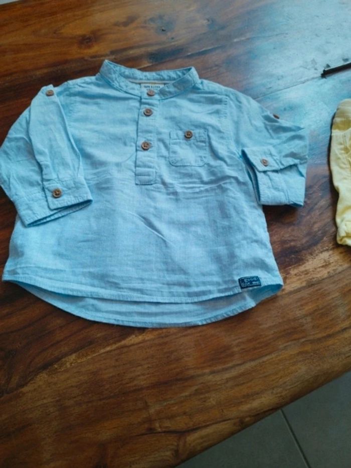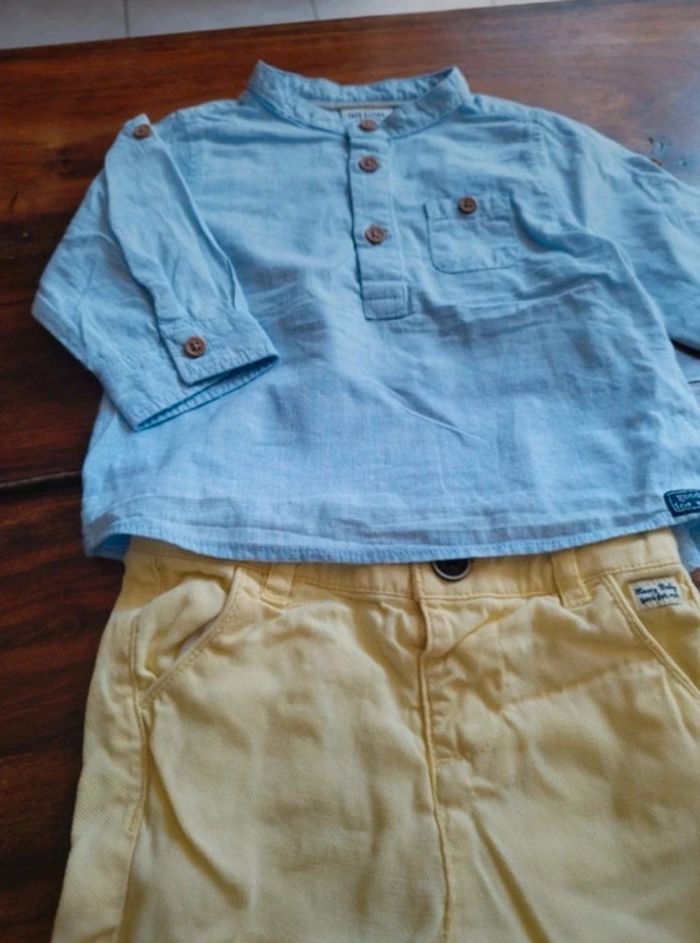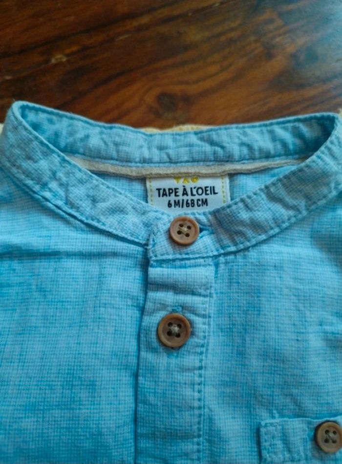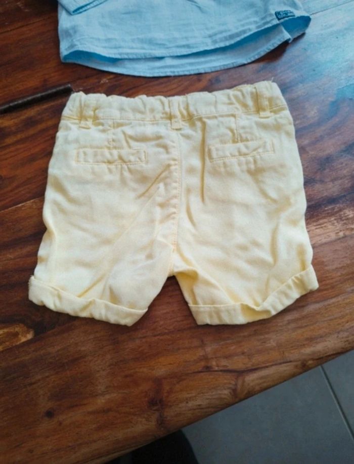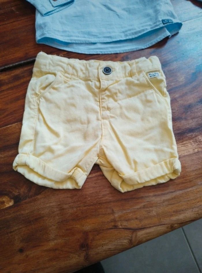 Ensemble chemise ciel col mao, short jaune. 6 mois 68cm #elfire29garcon6mois