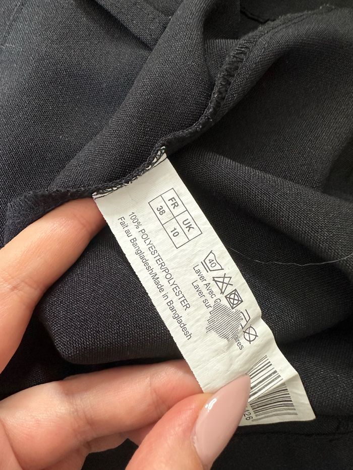 Pantalon - Excellent état - Taille 38 équivalent M - Couleur noire - Marque In Extenso - Coupe droite - Passants à la taille pour y ajouter une ceinture - 100% Polyester Dimensions: - 38cm à la taille - 78cm entre jambe - 98cm de long