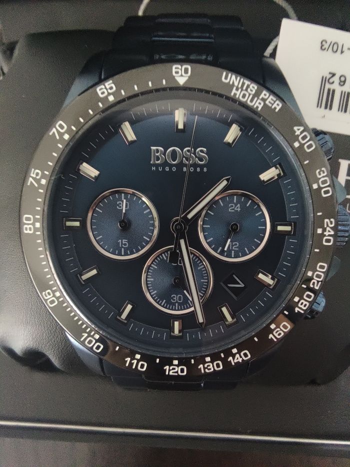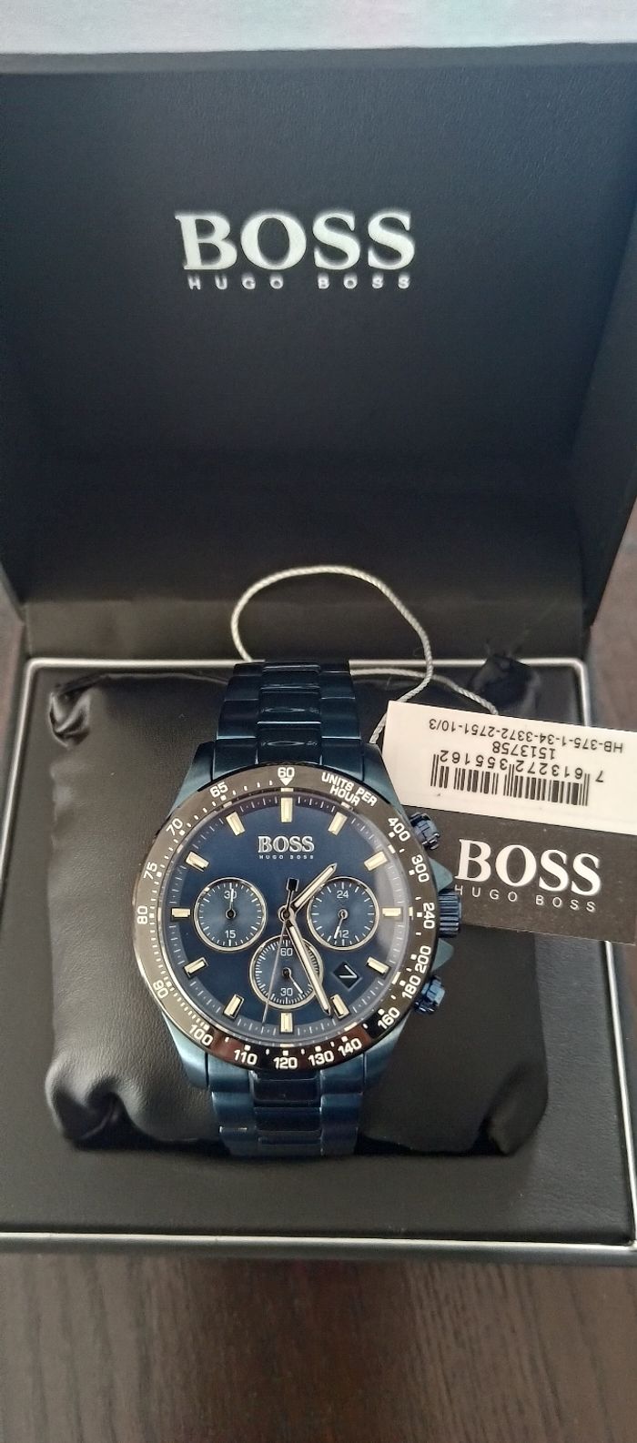 Je vends ma splendide montre Hugo Boss Chronographe à Quartz pour Homme Collection HERO avec Bracelet en Acier Inoxydable full Blue NEUVE acheté sur Amazon au prix de 439.95e. C'est une authentique montre Hugo Boss avec l'inscription complète, l'identification, la boîte, la facture et il y a toujours le film protecteur sur l'arrière de la montre comme sur la photo. Le bracelet peut se régler facilement chez un bijoutier.