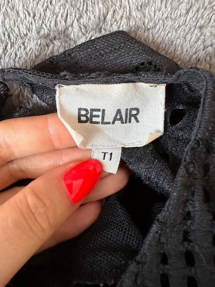 Élevez votre style avec cette superbe blouse noire de chez Bel Air en taille 1. Confectionnée en soie, cette pièce allie luxe et confort, vous offrant une sensation douce et agréable sur la peau. Les détails de broderies délicates à l'arrière ajoutent une touche de raffinement et d'originalité à cette pièce intemporelle.