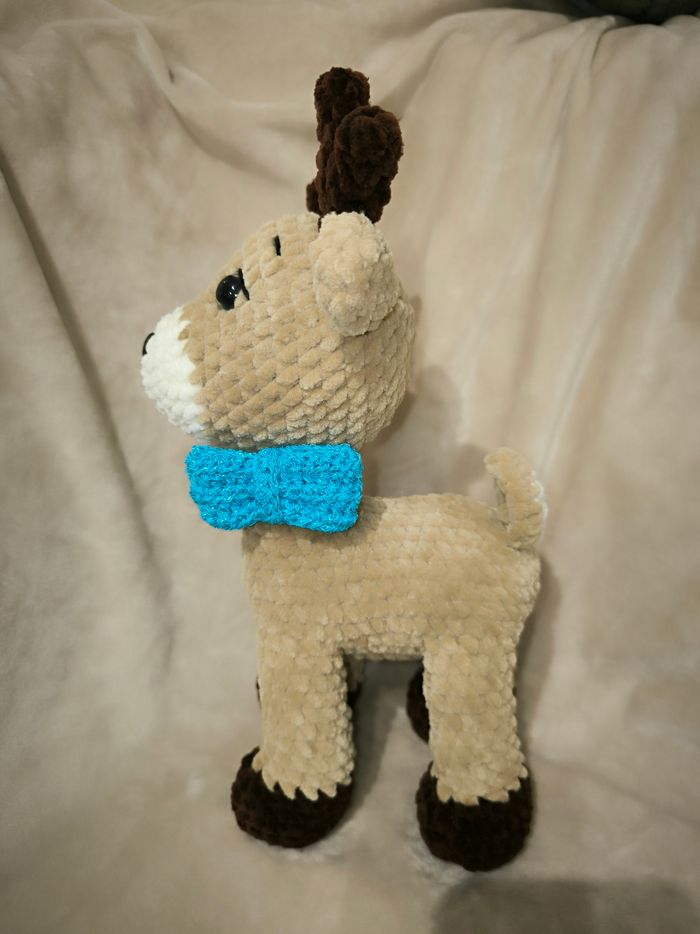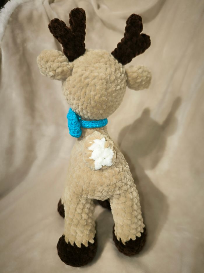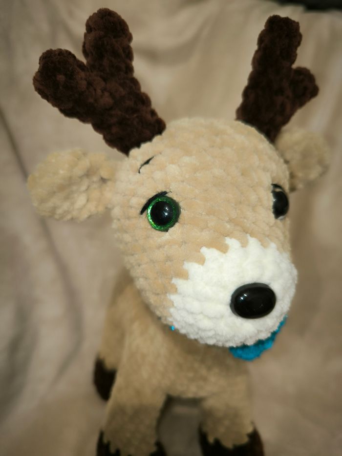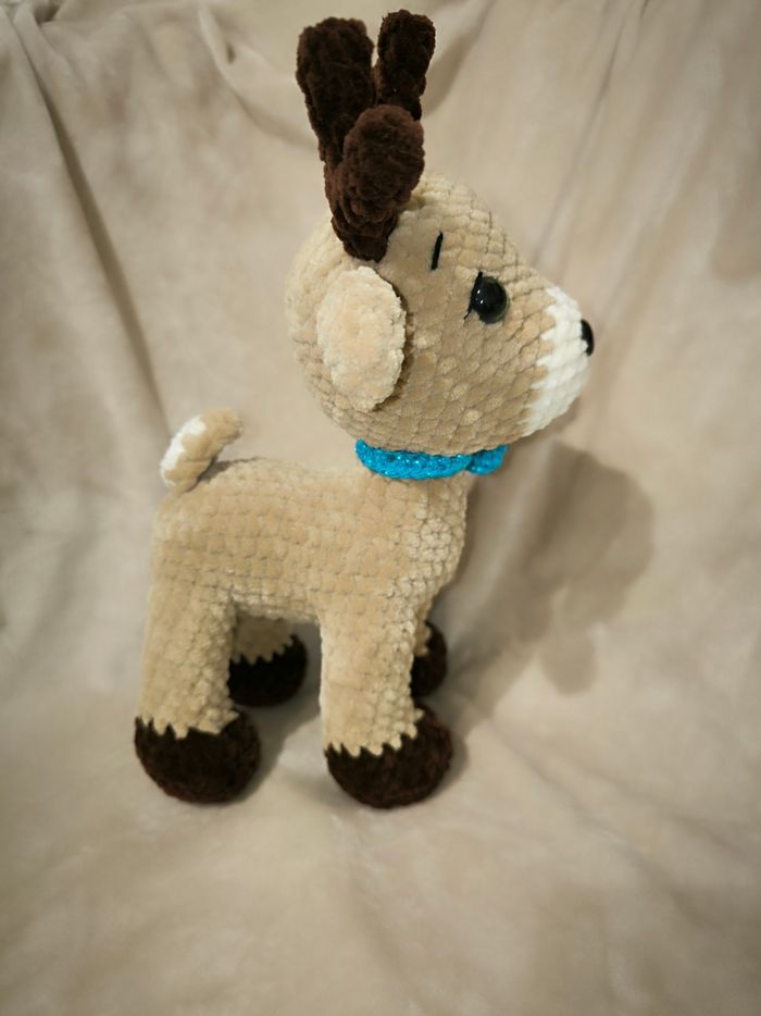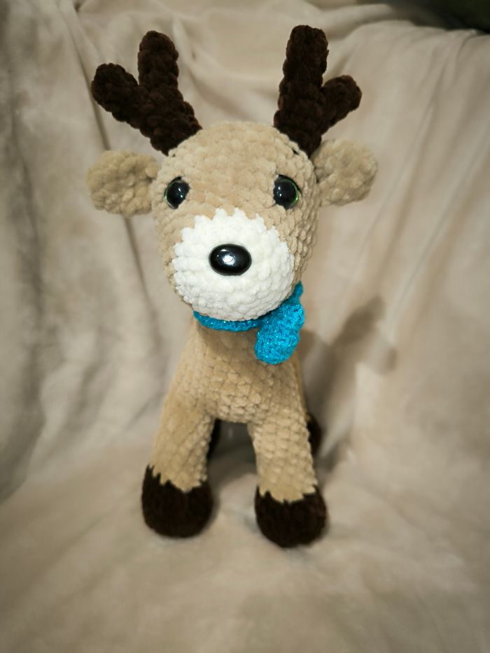 Renne au crochet réalisé par mes soins. Yeux de sécurité Laine velours Il mesure 27 cm Ne convient pas aux enfants de moins de 3 ans. Idéale en décoration.