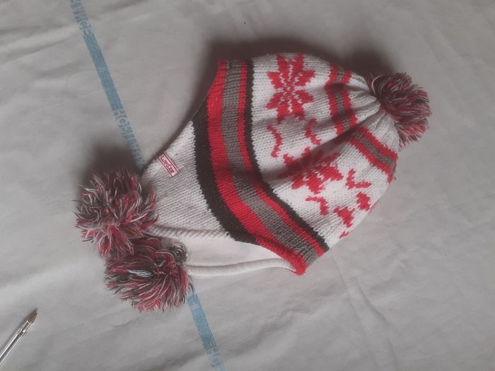 Bonnet péruvien rouge et blanc à pompon 24 mois