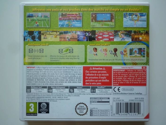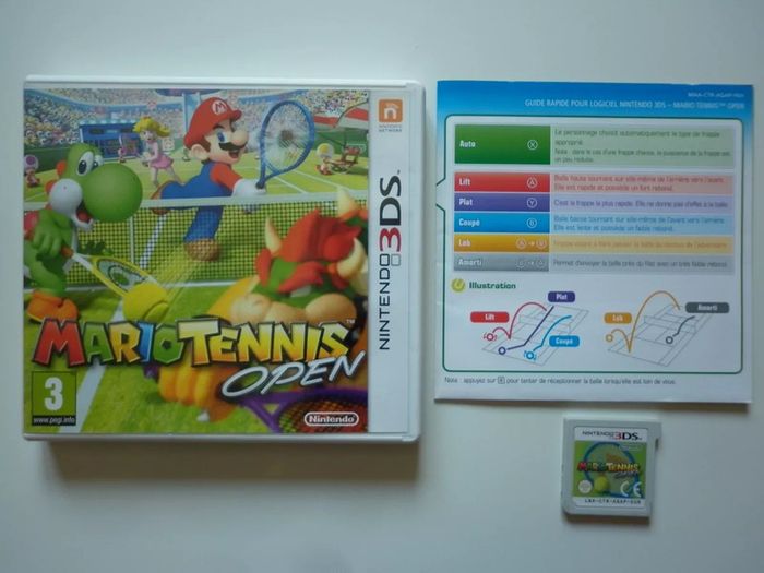 Mario Tennis Open Jeu Vidéo Nintendo 3DS (en très bon état). Inclus le boîtier d'origine et le guide rapide. Le jeu et le manuel électronique sont en Français, Anglais, Italien, Allemand, Espagnol, Néerlandais, Portugais, Russe. Allez voir mes autres objets!!