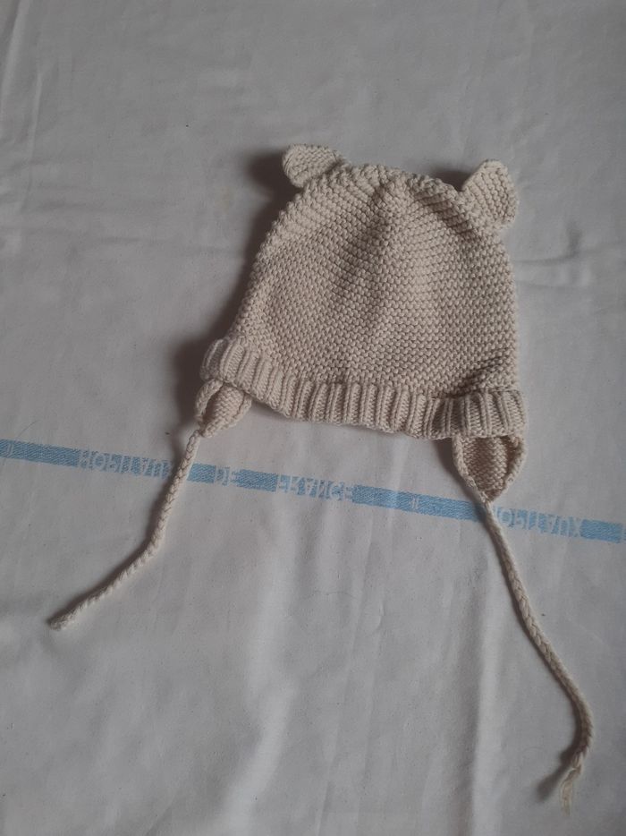 Bonnet beige avec lien et oreilles sur le sommet du bonnet 6 mois