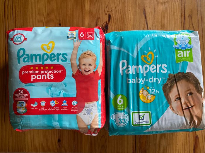 27 couches culottes + 33 couches normales A partir de 15kg Possibilité à l’unité Premium protection et baby dry