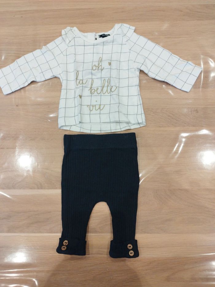 Ensemble t-shirt manches longues et pantalon En très bon état Kiabi Taille 1 mois