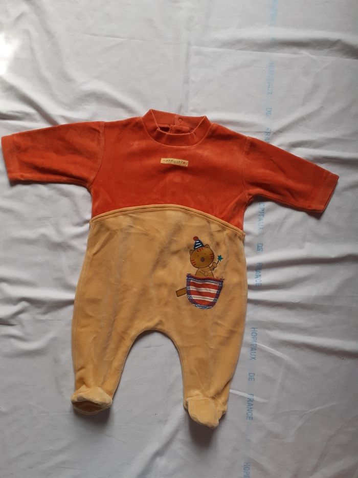 Babygros bicolore orange motif chat magicien - photo numéro 1