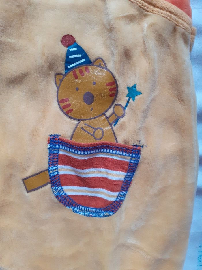 Babygros bicolore orange motif chat magicien - photo numéro 2