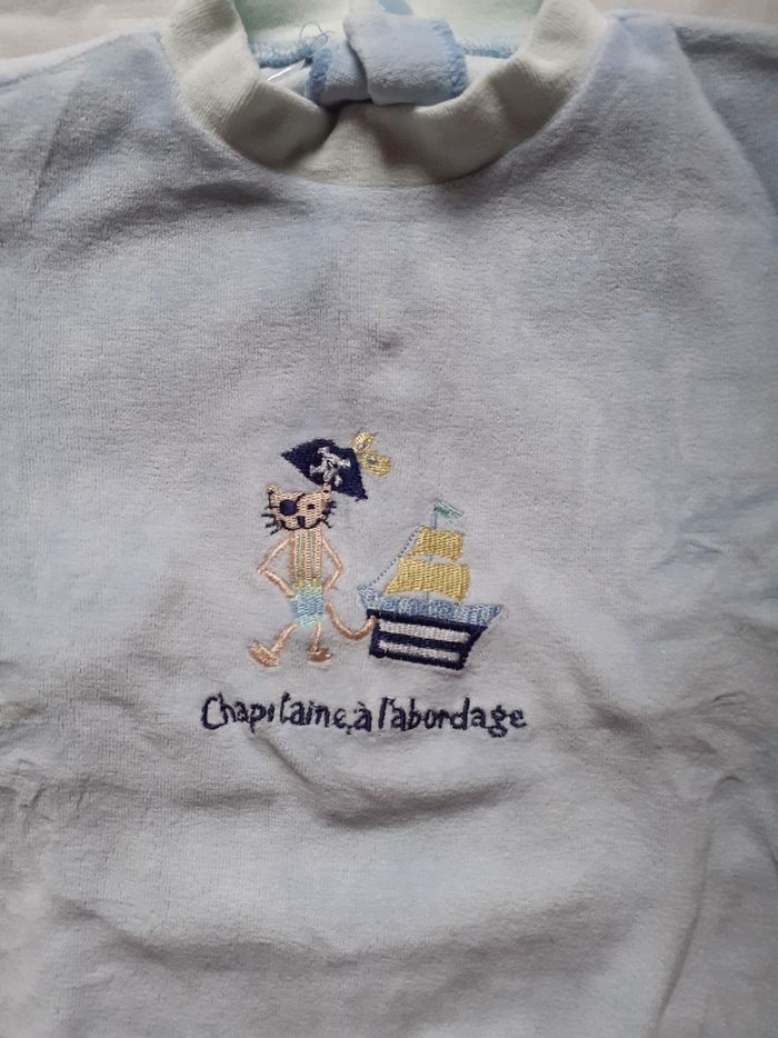 Babygros bleu ciel motif chat pirate - photo numéro 1
