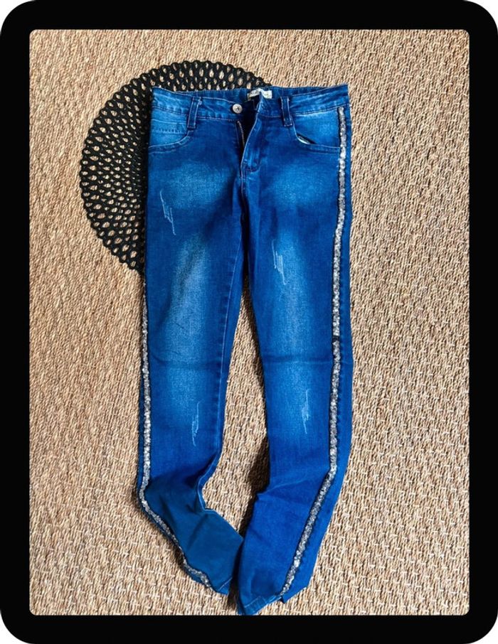 Jean bande argent paillette Tapez sur #chachou991212ans pour voir les articles en vente de la même taille … Envoi rapide et soigné … Maison non fumeur et sans animaux … #jean #jeanfille #argent C96