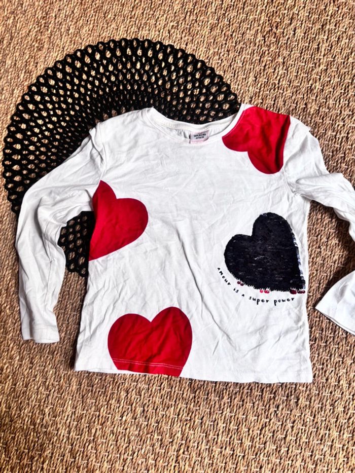 TEE shirt cœur paillette réversible Tapez sur #chachou99126ans pour voir les articles en vente de la même taille … Envoi rapide et soigné … Maison non fumeur et sans animaux … #tao #taofille C41