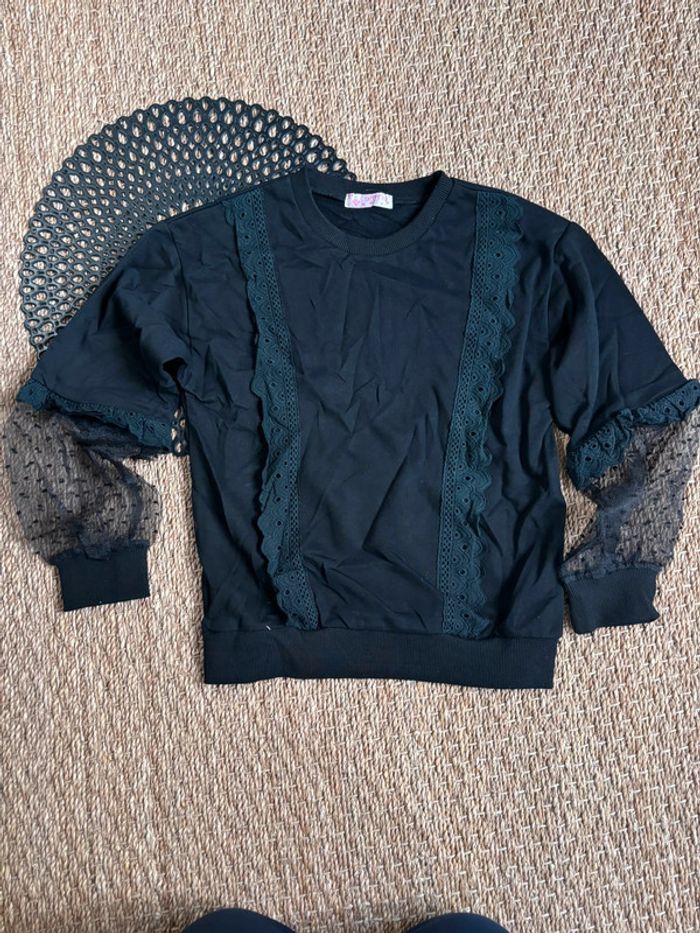 Pull noir manche tulle Tapez sur #chachou991212ans pour voir les articles en vente de la même taille … Envoi rapide et soigné … Maison non fumeur et sans animaux … #pull #pullefille #sweatfille C27