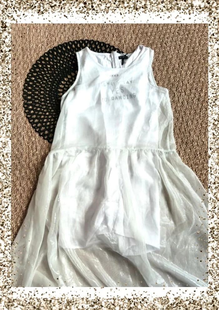 Robe satinée en haut et tulle blanc en bas avec strass sur l écriture Un petit bijoux cette robe Tapez sur #chachou991210ans pour voir les articles en vente de la même taille … Envoi rapide et soigné … Maison non fumeur et sans animaux … Clicorne