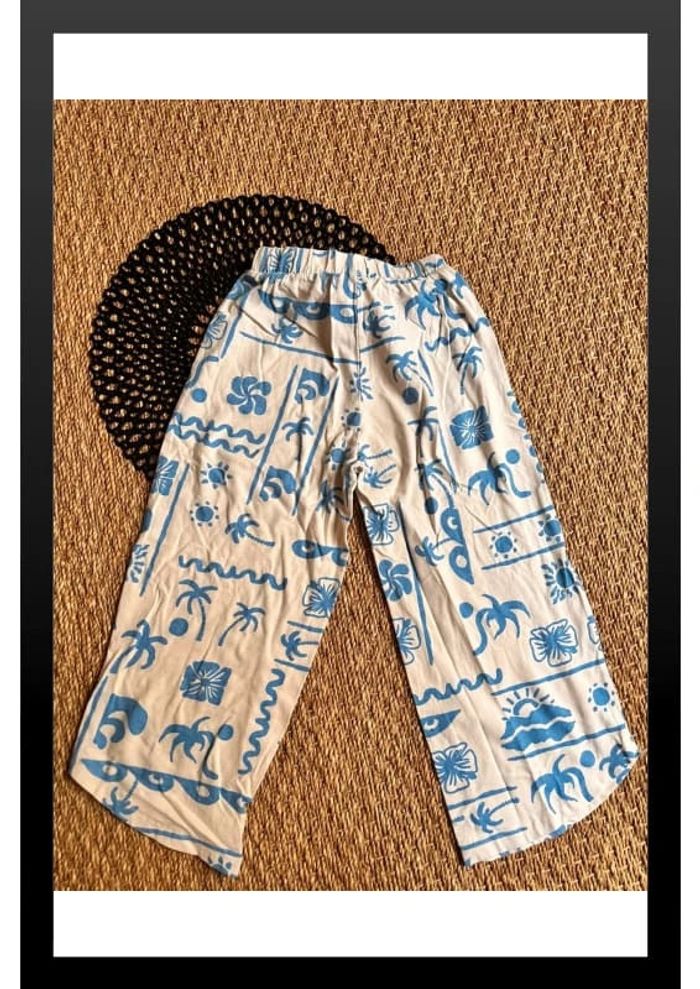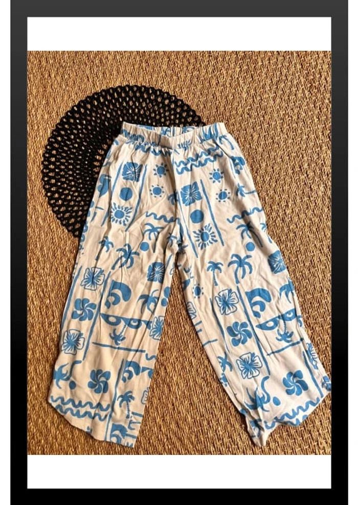 Pantalon palazzo bleu motif Tapez sur #chachou99128ans pour voir les articles en vente de la même taille … Envoi rapide et soigné … Maison non fumeur et sans animaux … C65