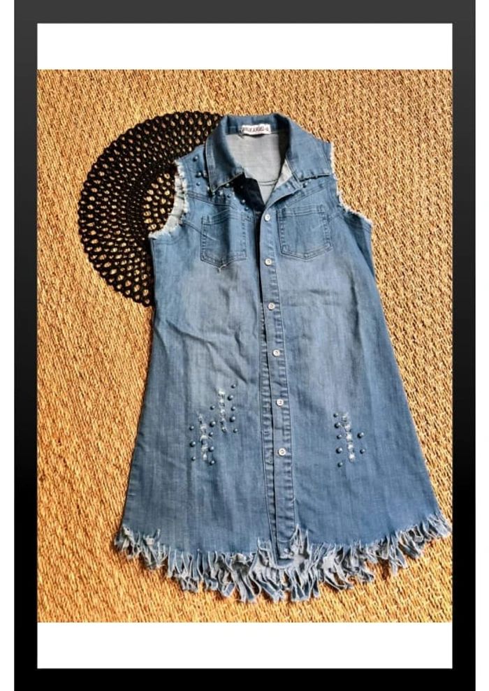 Robe sans manche jean perle peut aussi se porté en chemise ouverte style veste Tapez sur #chachou991210ans pour voir les articles en vente de la même taille … Envoi rapide et soigné … Maison non fumeur et sans animaux … C82