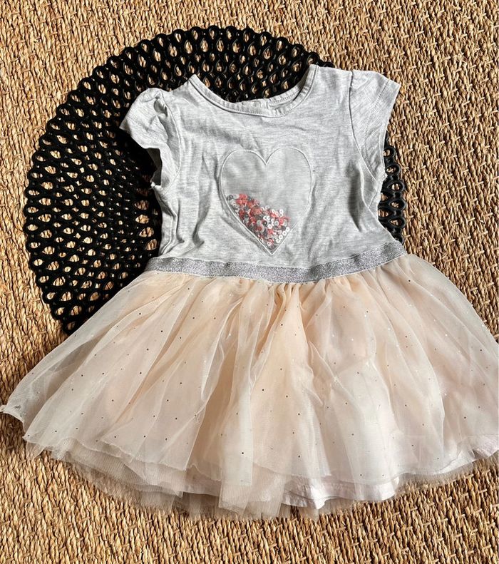 Robe grise cœur avec paillette amovible 12/18 mois Cliquez sur #chachou991218mois pour voir les articles en vente de la même taille … Envoi rapide et soigné … Maison non fumeur et sans animaux … C23