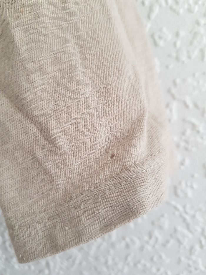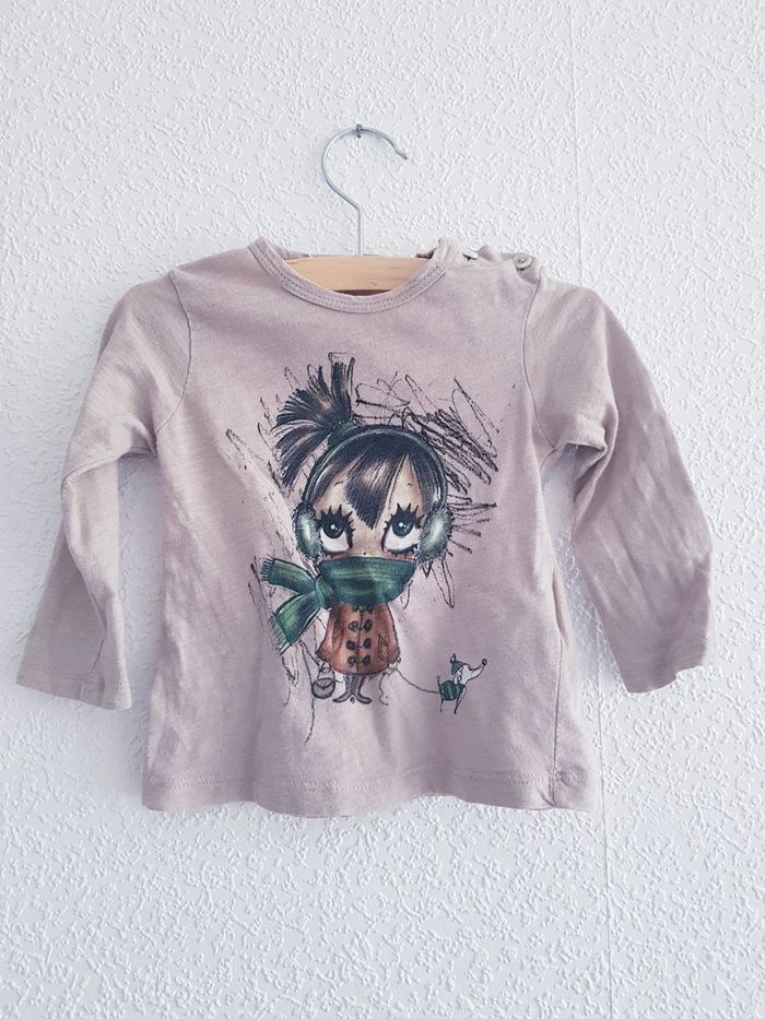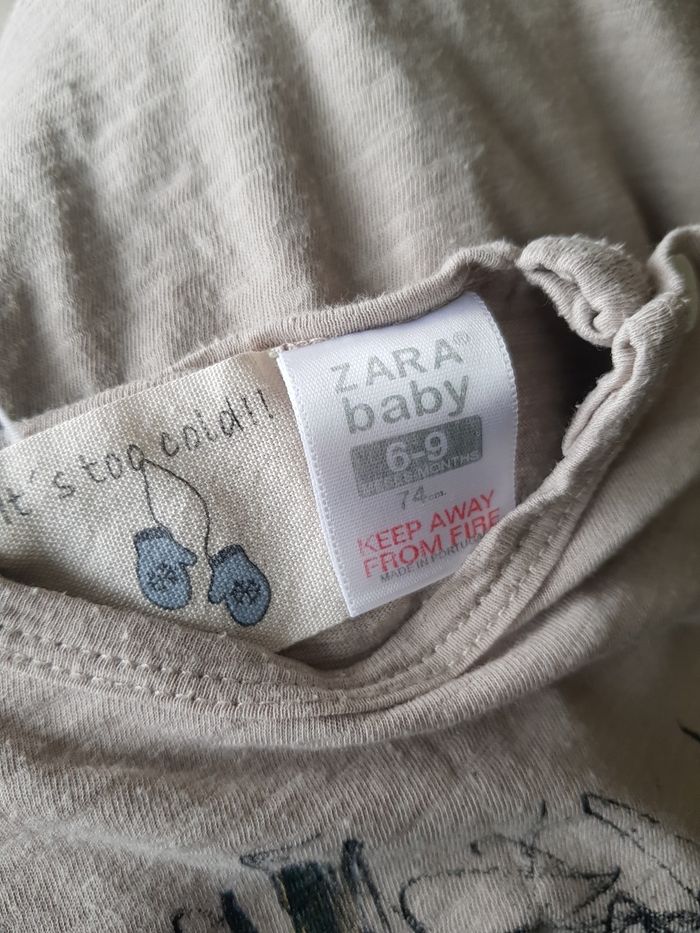 Tous mes articles Zara : #zarasev Tous mes t-shirts : #tshirtsev Tous mes habits fille 6 mois : #6moissevfille Tous mes habits fille 9 mois : #9moissevfille Tee-shirt à manches longues Marque : ZARA Couleur : beige foncé Taille : 6/9 mois - 74 cm État : satisfaisant Trou manche droite, aisselle droite 100% coton Retrait sur place ou envoi.