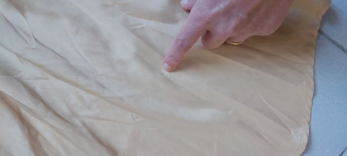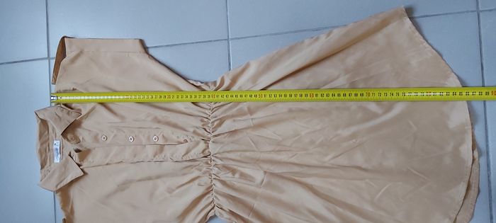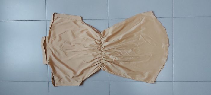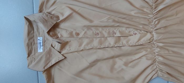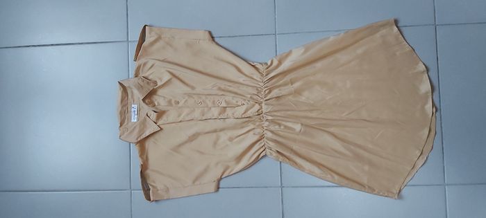 .Robe manche courte Matière fluide Taille M couleur abricot Sur le devant une petite tâche rouge près du col et un mini trait noir sur la jupe voir photo Sur l'arrière une petite tâche rouge près du col voir photo #carineddiMfemme
