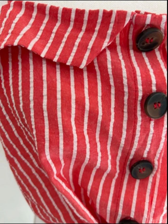 Description: 🌺 Marque : Primark 🌺 Taille : 42 🌺 Couleur : Corail avec rayures blanches 🌺 État : Excellent (comme neuf) 🌺 Caractéristiques : • Boutons sur le devant pour un look tendance et pratique • Coupe courte idéale pour un style estival et décontracté • Couleur corail avec des rayures blanches pour une touche vibrante et fraîche • Idéal pour les journées ensoleillées, les sorties décontractées ou les tenues de vacances N’hésitez pas à me contacter pour plus d’informations ou pour des photos supplémentaires! #Primark #TopCourt #Taille42 #Corail #RayuresBlanches #BoutonsDevant #StyleEstival #VintedFrance #OccasionCommeNeuf #L16