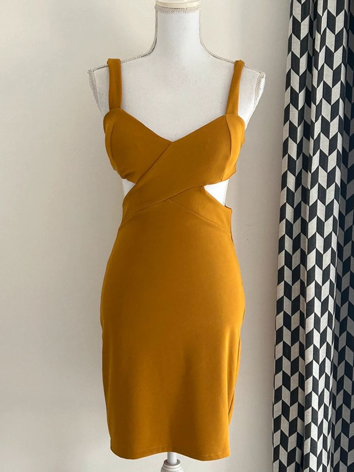 Robe couleur moutarde taille 36, longueur 90 cm /#l42