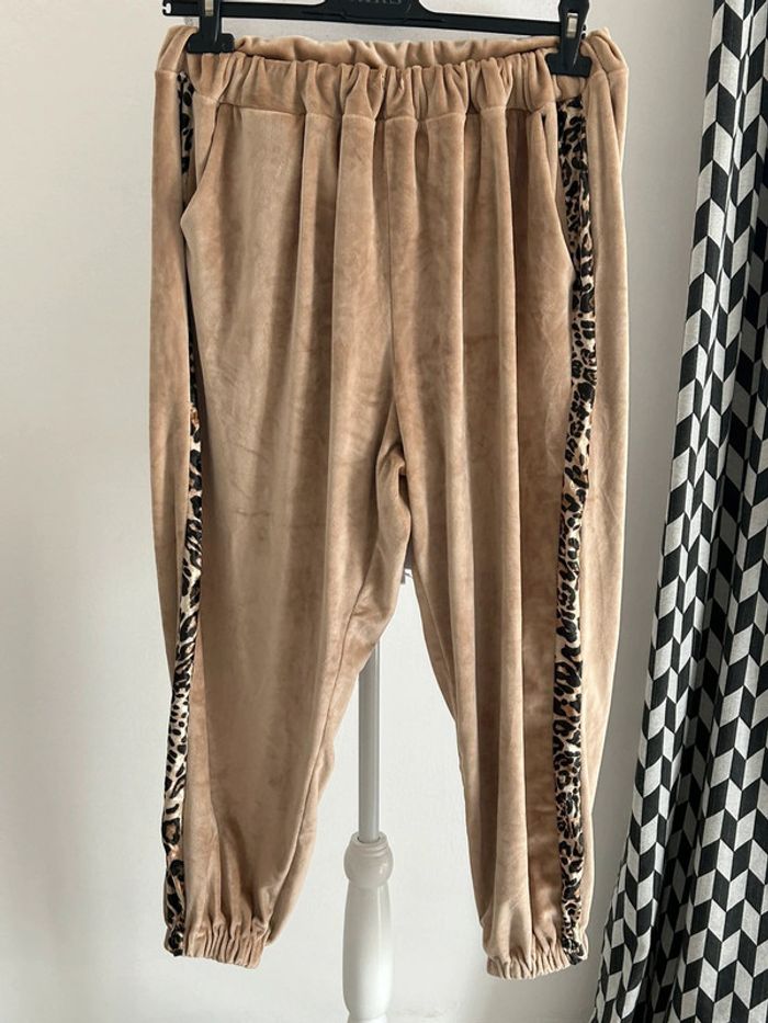 Description: Ce jogging au fini velours ras est à la fois confortable et tendance! Sa coupe sarouel offre une liberté de mouvement optimale, parfaite pour une journée décontractée. En beige avec un liseré imprimé léopard de chaque côté, il ajoute une touche sauvage à votre style. En excellent état, ce jogging est prêt à vous accompagner avec style. Ne passez pas à côté de cette pièce unique! #Jogging #VeloursRas #Taille40 #CoupeSarouel #Léopard #ExcellentÉtat #Modefemme #VintedFashion #l19