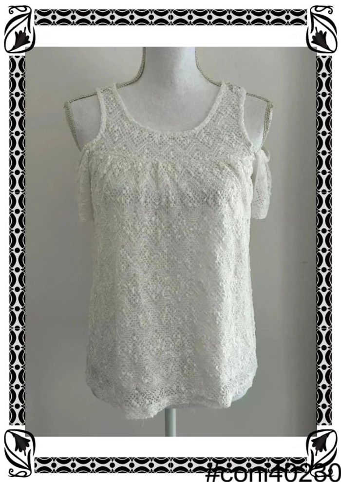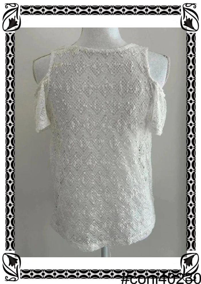 Description: 👚 Top en dentelle blanc de chez C&A, taille 36 🕊️ Épaules dénudées pour une touche de sensualité 💫 Doublé à l'avant pour plus de confort, transparent à l'arrière pour une allure séduisante 🌟 Excellent état, prêt à sublimer votre silhouette avec élégance 👚 Offrez-vous ce top en dentelle pour une féminité assumée et raffinée ! #TopEnDentelle #CandA #Taille36 #ÉpaulesDénudées #ModeFéminine #Élégance #L21
