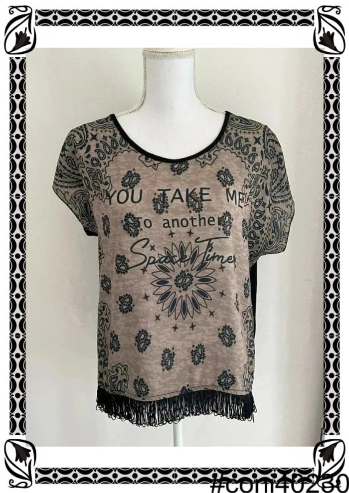 Description: 👚 Blouse à manches courtes de chez Cache Cache, taille 40 ⚫ Noir et marron avec un imprimé ethnique pour une touche de caractère 🌟 Excellent état, prête à ajouter une note d'originalité à votre tenue 👚 Avec des franges noires en bas pour une finition tendance 👚 Offrez-vous cette blouse pour un look ethnique chic et élégant ! #BlouseManchesCourtes #CacheCache #Taille40 #StyleEthnique #ModeFéminine #Originalité #L29