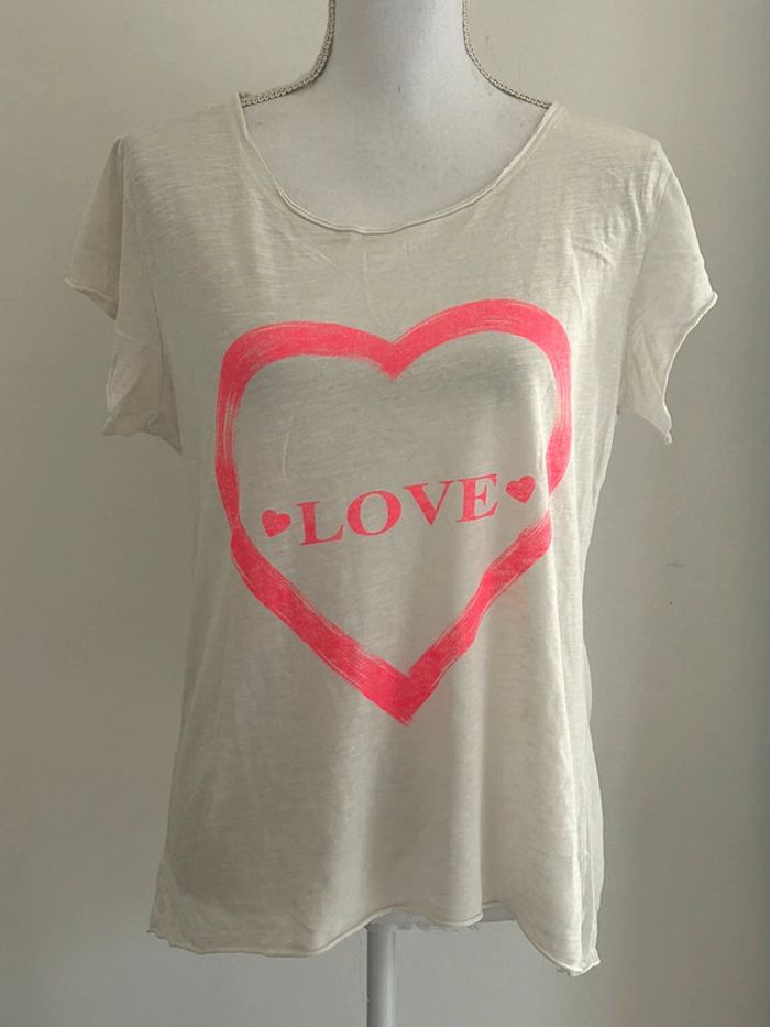 👕 Rafraîchissez votre collection de tee-shirts avec ce ravissant tee-shirt manches courtes ! Sa couleur crème douce en fait une pièce facile à assortir, parfaite pour toutes les saisons. Arborant un col rond classique, il offre un style décontracté et polyvalent. Le motif cœur "LOVE" en rose sur le devant apporte une touche d'adorabilité et de romantisme à votre tenue. Taille 40, il assure un ajustement confortable pour une silhouette flatteuse. En excellent état, ce tee-shirt est prêt à ajouter une dose de charme à votre garde-robe. Ne manquez pas l'occasion de l'ajouter à votre collection ! #TeeShirtManchesCourtes #Taille40 #ColRond #Crème #CœurLove #ExcellentÉtat #FashionFemme #l19