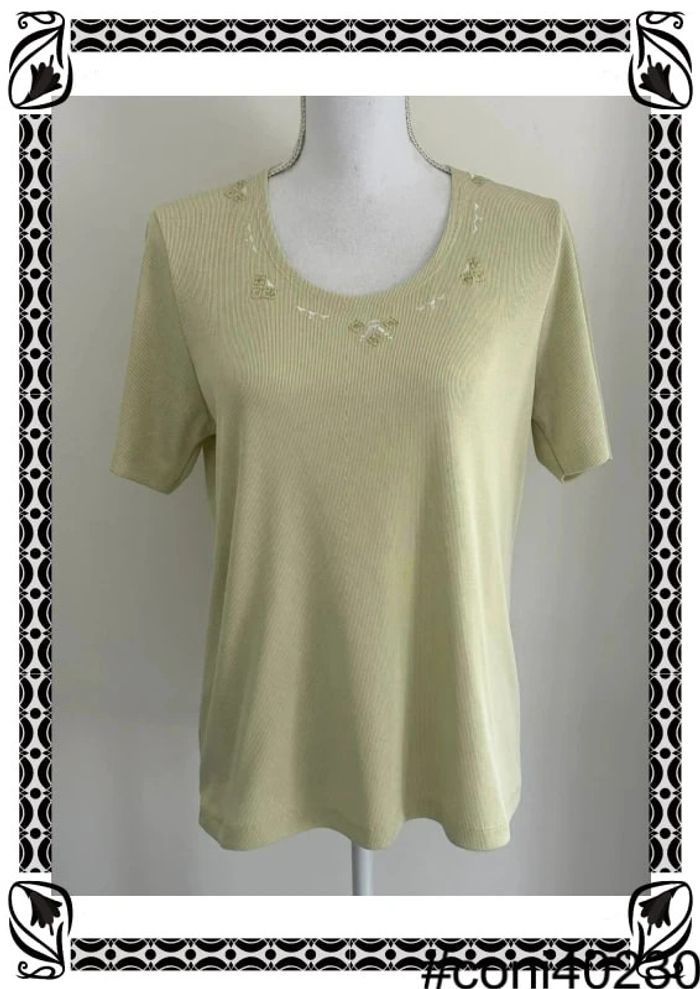 👕 Rafraîchissez votre garde-robe avec ce charmant t-shirt manches courtes ! Dans une couleur menthe rafraîchissante, il apporte une touche de vitalité à votre tenue. Son col rond classique est rehaussé d'un motif brodé délicat, ajoutant une note d'élégance et de raffinement. Taille 42, il assure un ajustement confortable pour une silhouette féminine. En excellent état, ce t-shirt est prêt à devenir l'une de vos pièces préférées. Ne manquez pas l'occasion d'ajouter cette pièce polyvalente à votre collection ! #TshirtManchesCourtes #Menthe #Taille42 #ColRond #MotifBrodé #ExcellentÉtat #FashionFemme #L24