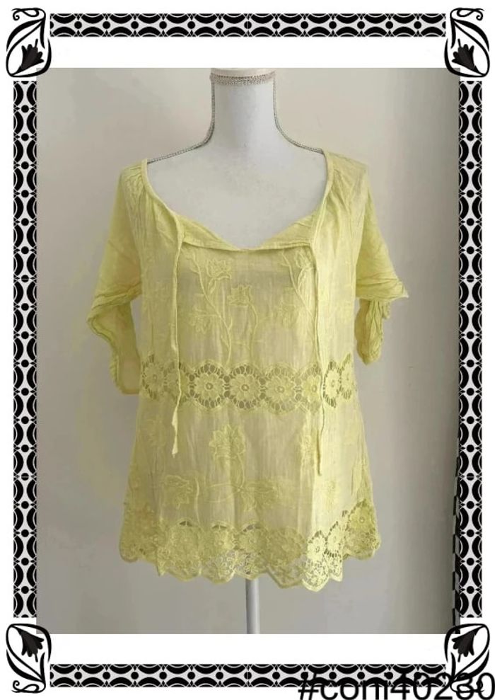 👚 Optez pour le style italien avec cette magnifique blouse à manches 3/4 ! Dans une couleur jaune ensoleillée, elle respire la joie de vivre et la vitalité. Fabriquée en Italie, elle incarne l'artisanat et le raffinement italiens. Les cordons au niveau du col ajoutent une touche de sophistication et de féminité à cette pièce élégante. Ornée d'une broderie délicate en motif de fleurs, elle offre une esthétique charmante et intemporelle. Taille 40, elle assure un ajustement confortable pour une silhouette élégante. En excellent état, cette blouse est prête à illuminer votre garde-robe avec son éclat ensoleillé. Ne manquez pas l'occasion de l'ajouter à votre collection ! #BlouseJaune #Taille40 #FabriquéEnItalie #CordonsAuCol #MotifDeFleursBrodé #ExcellentÉtat #FashionFemme #L16