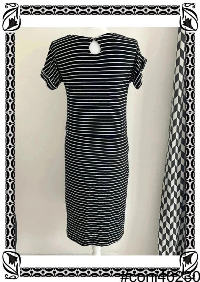 Robe Longue à Rayures Noir et Blanc, Manches Courtes, Taille 36