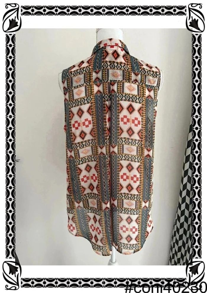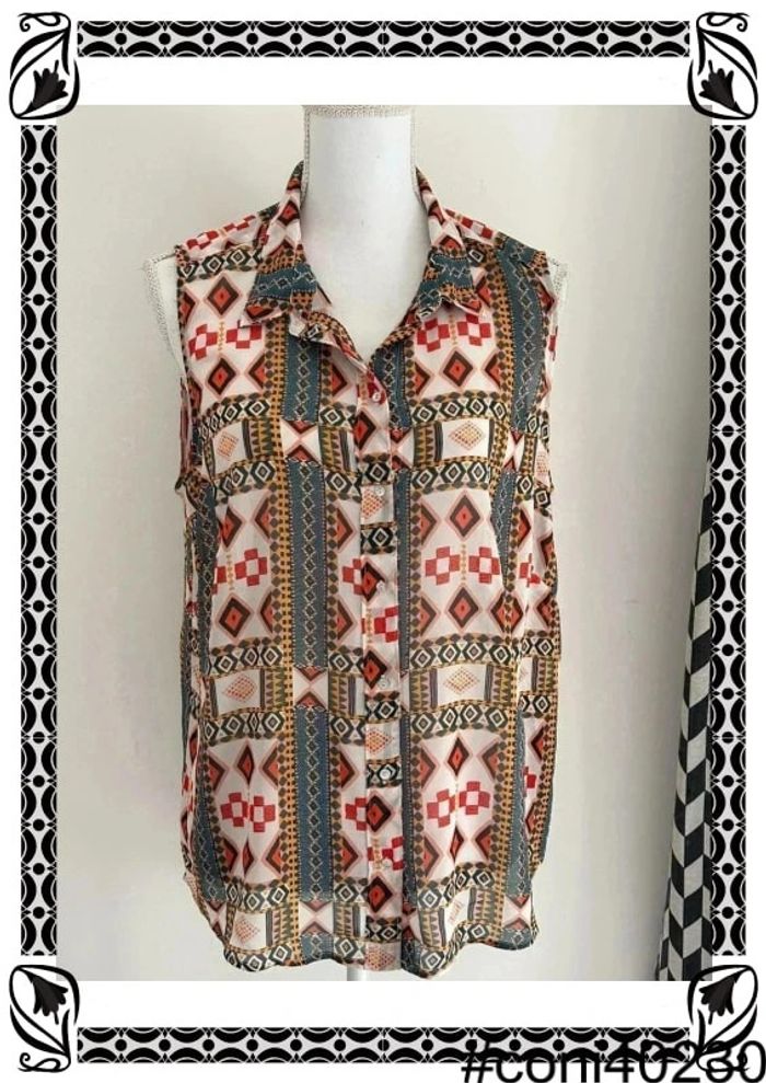 Description: 👚 Blouse sans manches de chez H&M, taille 42 🌈 Couleur orange et multicolore avec un imprimé ethnique pour une touche vibrante 👗 Dotée d'un col pour un style élégant 🌟 En excellent état, prête à ajouter une note de couleur et de style à votre tenue #BlouseSansManches #HM #Taille42 #Orange #ImpriméEthnique #ModeFéminine #L26