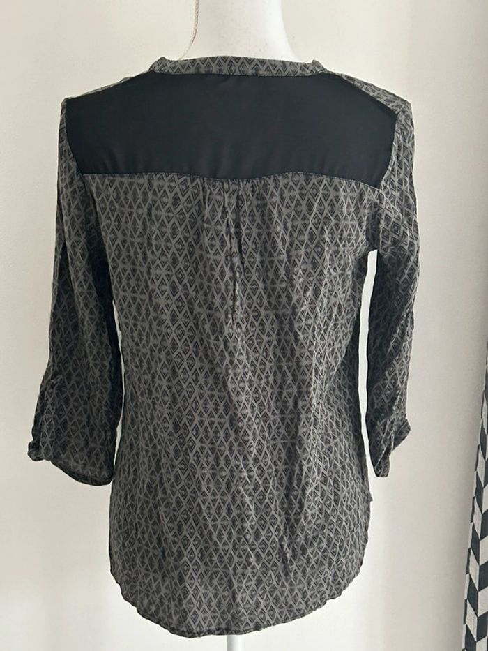 👚 Sublimez votre look avec cette élégante blouse à manches longues de la marque Cache Cache ! Dotée d'un léger décolleté en V, elle met en valeur votre féminité avec subtilité. Dans des tons gris et noir avec un imprimé géométrique moderne, elle offre une esthétique tendance et sophistiquée. L'empiècement transparent noir au dos ajoute une touche de sensualité à cette pièce déjà élégante. Taille 38, elle assure un ajustement confortable pour une silhouette chic. En excellent état, cette blouse est prête à vous accompagner avec style dans toutes vos aventures. #BlouseCacheCache #ManchesLongues #Taille38 #DécolletéV #ImpriméGéométrique #DosTransparent #ExcellentÉtat #FashionFemme #l19