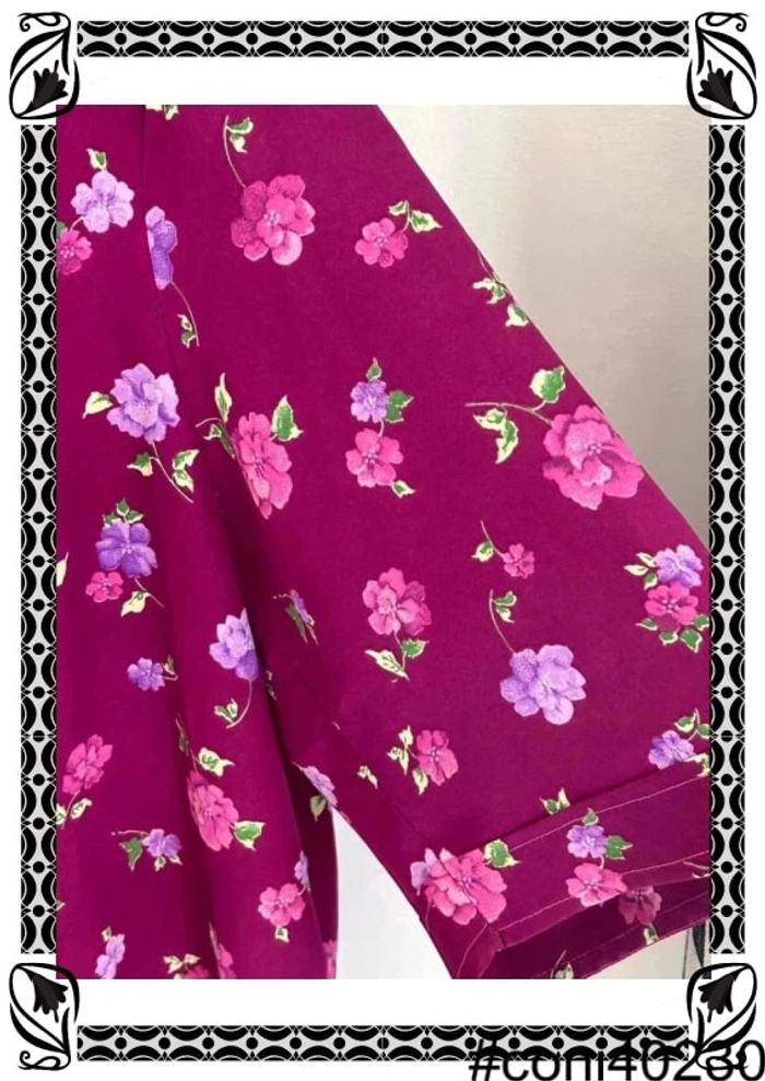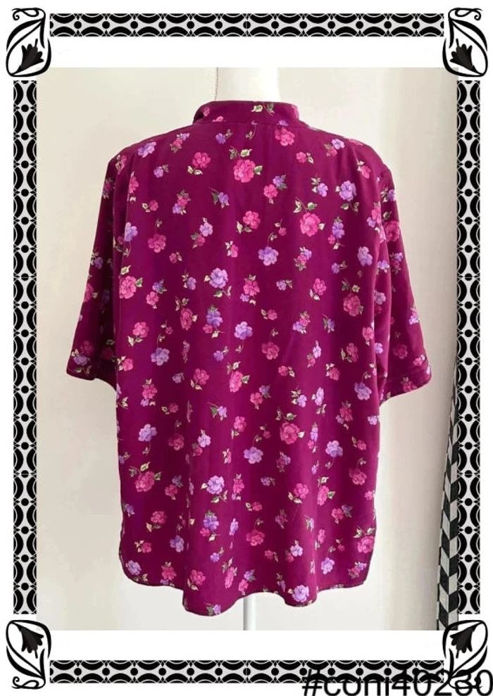 Blouse violette à fleurs, manches courtes, taille 46 - photo numéro 2