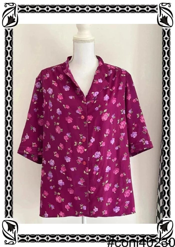 Blouse violette à fleurs, manches courtes, taille 46 - photo numéro 1