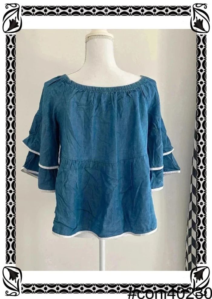 Blouse Manches Longues Bleue avec Volants 🌊 Taille 36 - photo numéro 1