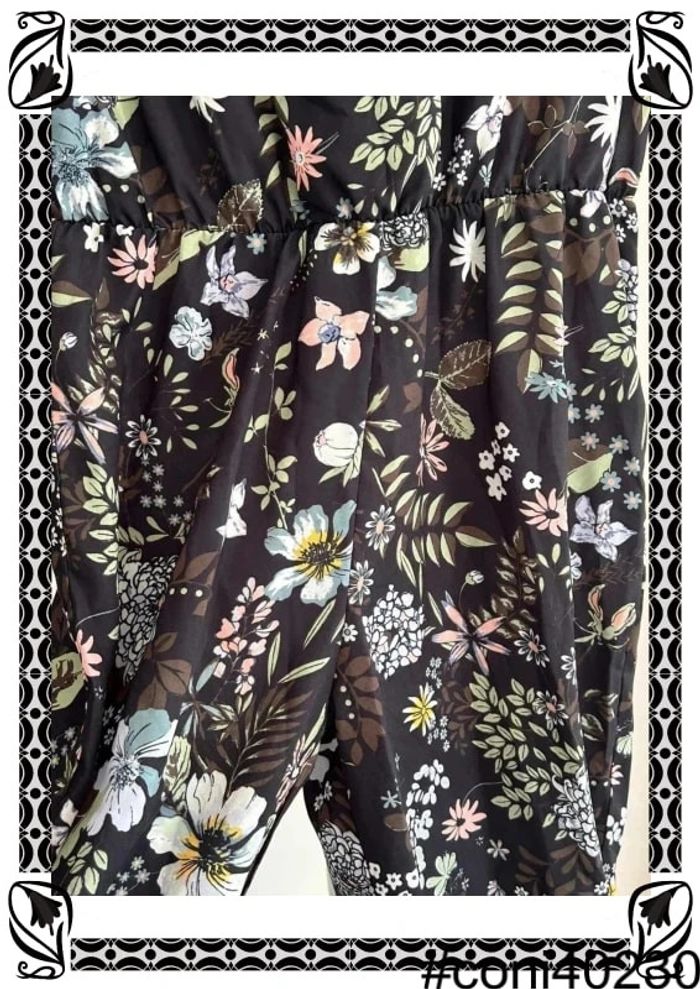 Combinaison Pantalon Noire - Motifs Floraux - Taille 36 - photo numéro 6