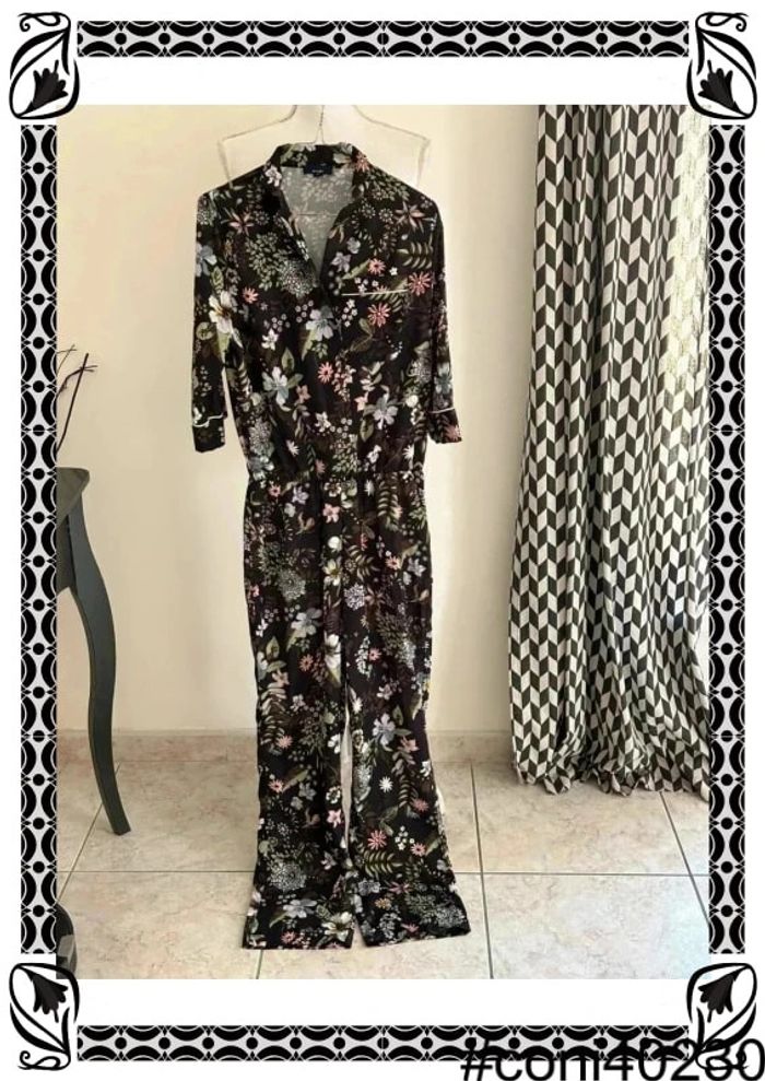 Combinaison Pantalon Noire - Motifs Floraux - Taille 36 - photo numéro 1
