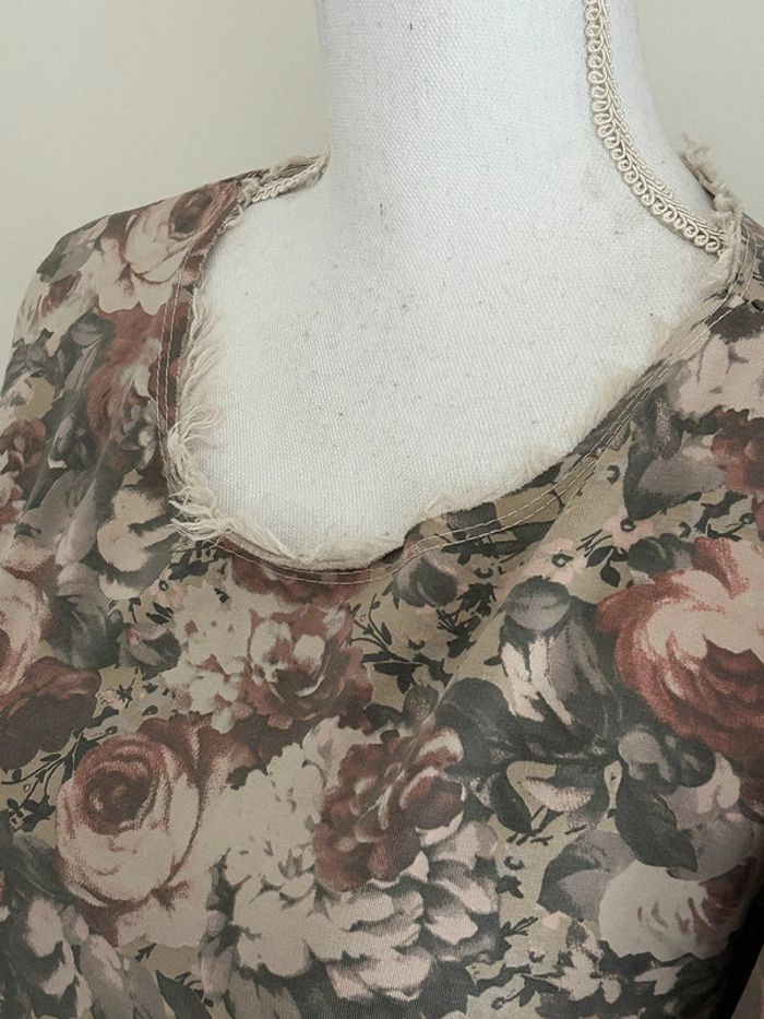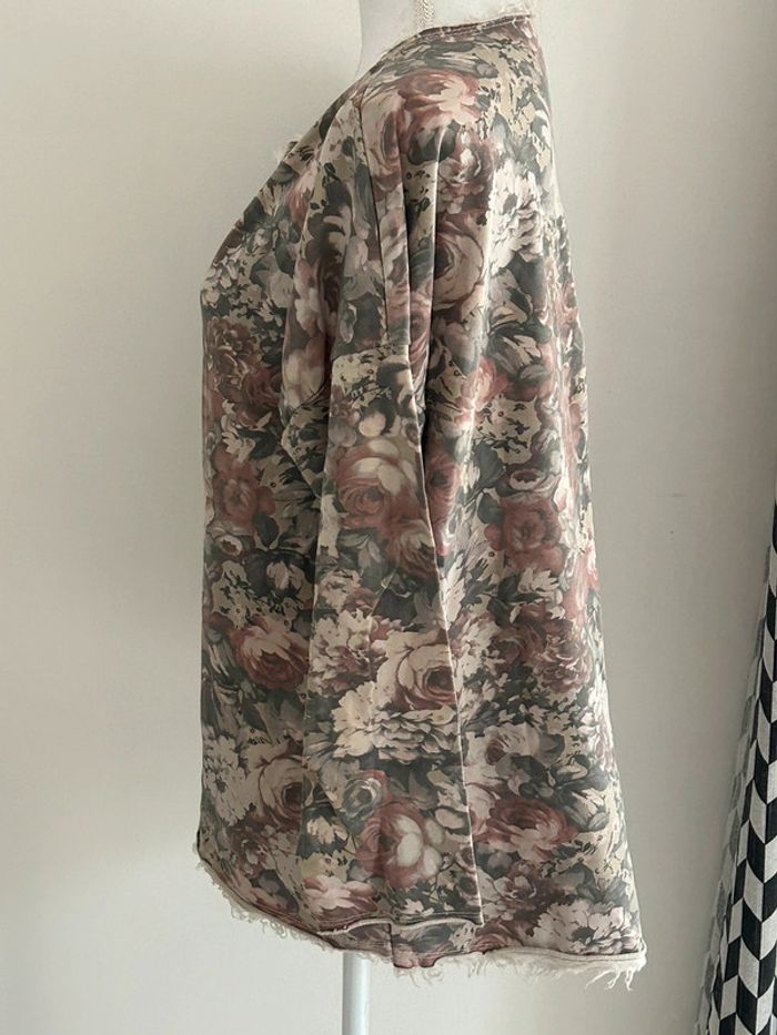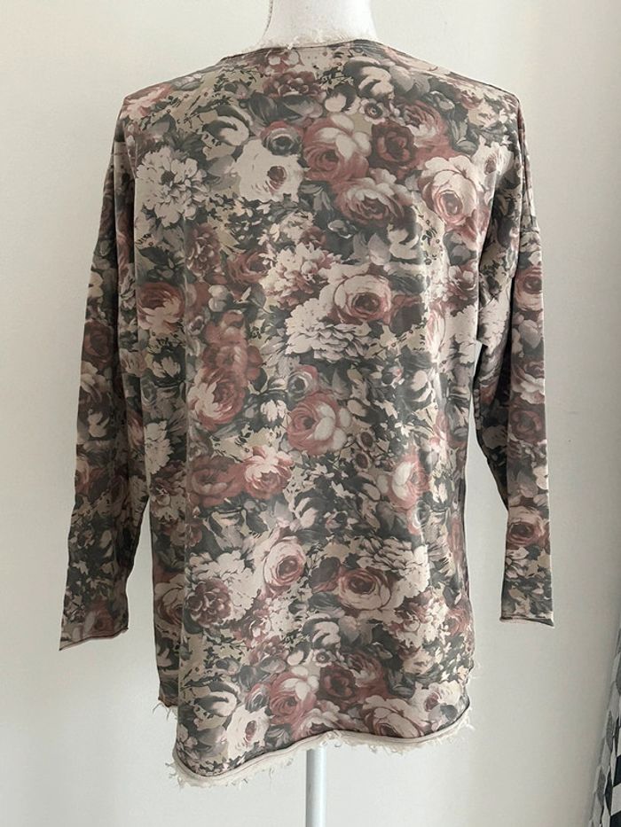 Sweat Long Beige-Kaki avec Motifs Fleurs - Fabriqué en Italie - Taille 42 - photo numéro 4